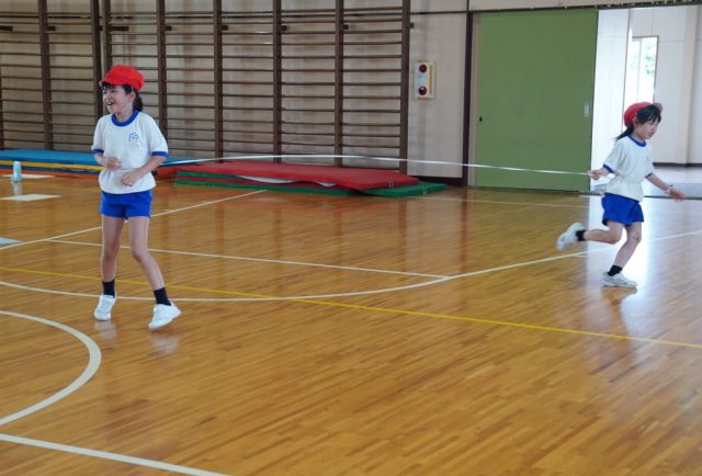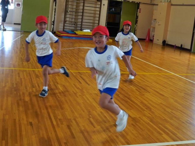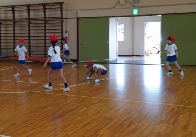 実践体育科では、「かべかべゴムハント」という鬼遊びを基にしたゲームをしています。