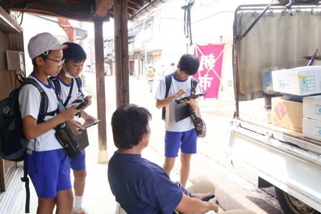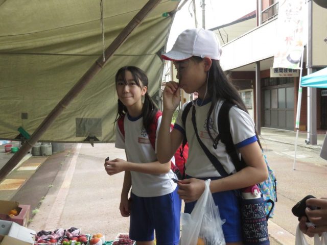 「3年生の時に、創造活動をしていたので、だいたいのお店はわかっていました。何件か見たことのあるお店はあったけど、ないお店もあって、でもそのかわり新しいところがけっこうありました。(中略)自分も思っていたけれど、やっぱりお店の数がすくなくなっているそうです。自分は朝市を郷土遺産だと思います。いまでは、数がどんどんへっているから残さなければいけないし、朝市に行っている人も楽しみがなくなるかもしれないからです。」