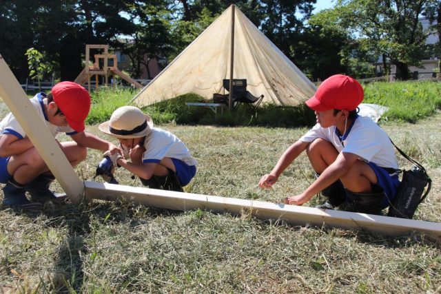 「2学期はテントでお泊まりがしたいな。あと、夜まではればれテントで過ごすとか」「テントの中でゴロゴロしたり、遊んだりしたい」「お昼ご飯とかも食べたいな」。やりたいことを話す中で、そのためにもっとテントをがんじょうにしたいという話題になりました。