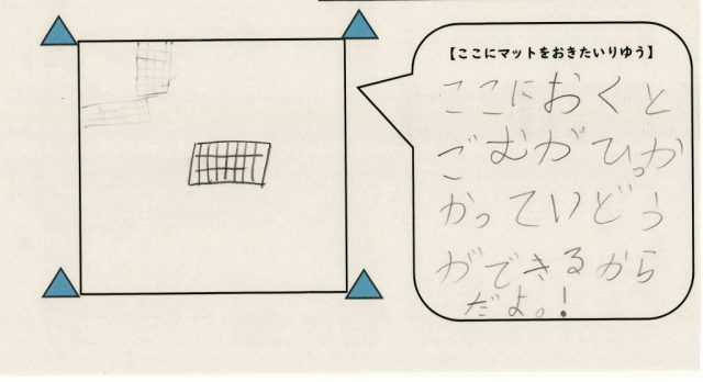 そこで、かべゴンマットを置く位置について話題すると、子どもは、次のことを試していると話しました。