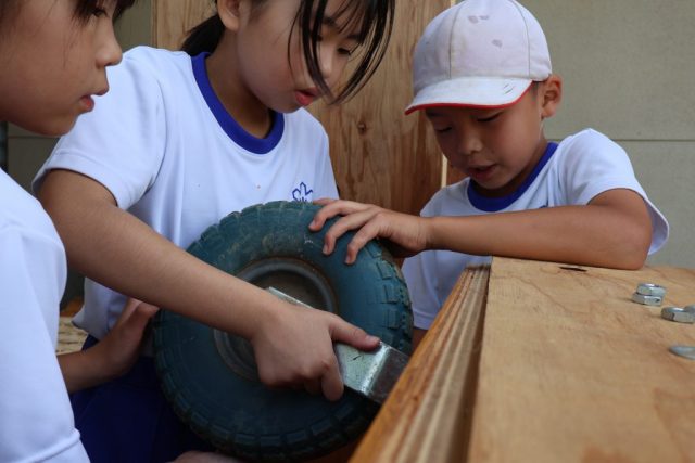 子どもは、「ボルトが緩んでいたから、タイヤが外れたのか」「だから点検って大事なんだね」と話し、すべてのタイヤがをしっかりとつけ直しました。