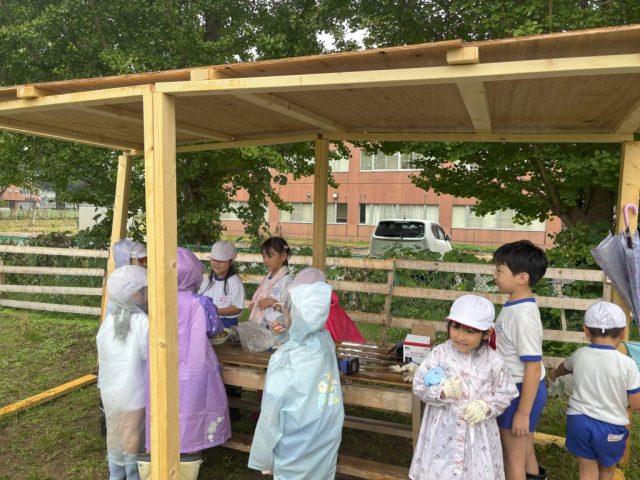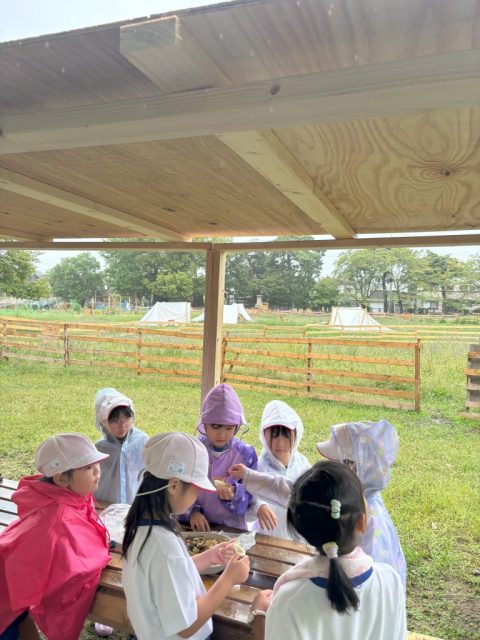 天気にかかわらず、原っぱのひつじふれあいランドを中心に活動しています。9月は、雨の日が続くことがありました。雨の中、ひつじふれあいランドのキッチンでご飯をつくる子どもが「雨の日でも安心してご飯をつくりたい」と話す姿がありました。