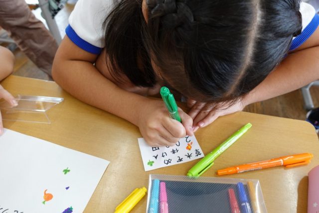 子どもは、「わくわく秋まつり」に向けて、売り物や看板をつくったり、値段を考えて値札を書いたりしました。
