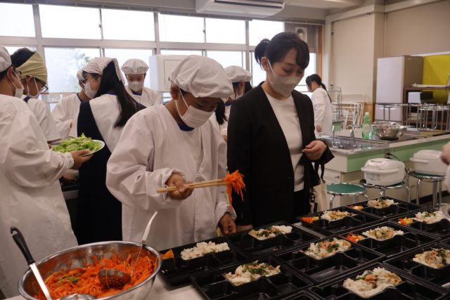 「今日つくってみて、弁当箱いっぱいに入っていて前回より良いと思いました。私の班がつくった『バナナかぼちゃ&ベーコンサラダ』は、バナナカボチャとベーコンが合っていて良かったです。(中略)来てくれた人から話を聞いて、より素材を活かすようなものを作ったほうがいいことと、なるべく食材がかぶらないようにした方がいいことがわかりました。最後の試食では、もっと素材を活かしたものを作りたいで。それこそフルーツポンチみたいな1つ1つの食材が主役になるような品をつくりたいです。」