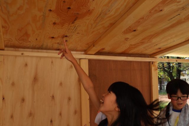 その後、建設中の東よりびと駅へ行った子どもは、木の板にハートマークのような模様を見つけると、「東よりびと駅にハートがある!観光地になるよ、ハートスポット」と嬉しそうに仲間に話しました。
