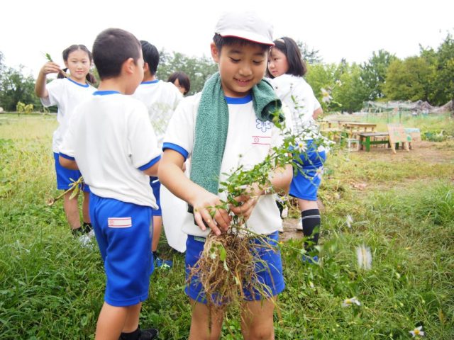 草花を採集したり観察したりすることを続ける中で、子どもは根の形に目を向けました。そして、細く広がっている根を「髪の毛型」、太い根が1本伸びている根を「ごぼう型」など、形の特徴をとらえて、根に名前をつけました。