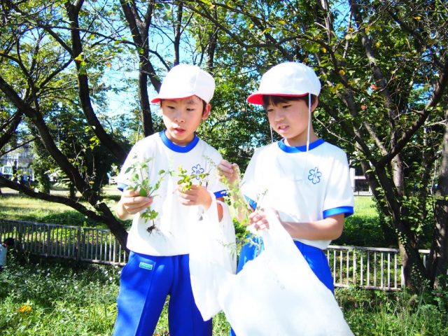 そして、実際に、花の数が多い草花と少ない草花、茎が長い草花と短い草花、土が固い場所の草花と柔らかい場所の草花などを採集して根の形を比べました。