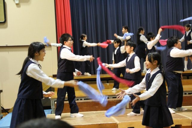 11月5日、自分や仲間が納得してつくった学級パフォーマンスを見せました。学級パフォーマンスをつくり、つくり変えながら自分たちのパフォーマンスに手応えを得ていました。