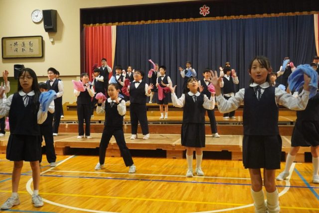 他学級のパフォーマンスの時には、掛け声や動きを真似したり、跳びはねて拍手をしたりしました。