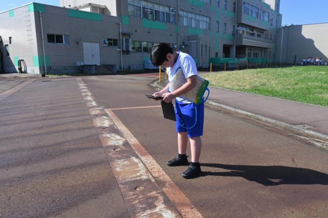 「学校のどこに雪対さくがあるさがしました。丸池にはスコップがおいてあって、グラウンドがわには、除雪機とスコップが5本くらいおいてありました。雪対さくをちゃんとしてるんだと思いました。」