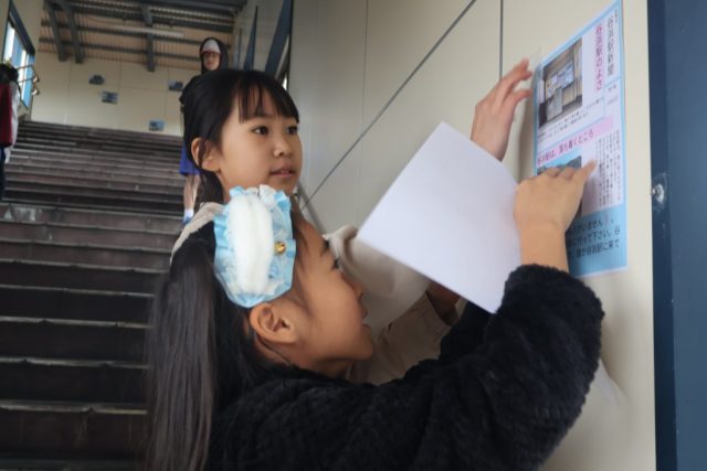 自分たちでつくった新聞を階段の壁に貼ったり、学校でつくった線路や電車を飾ったりしながら、イベントの開始時間ぎりぎりまで子どもは入念に準備をしました。