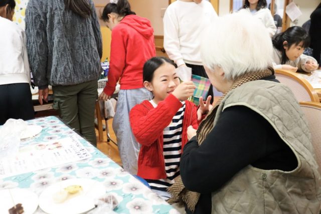 「5年2組が『4丁目のお茶会!!』を開いたことで私は、仲が良くなりました。とくに女の方です。けっこうお話ができました。私は話すのはとくにいいんですけど急にきんちょうしてきて・・・。でもニッコニコで話してくれるからお話できました。それとお茶チームっていそがしいんですけど、でも今回は他のこともあったからあんまり私は作ってなくてその間とかちゅうもんのときに話しました。名前はみたかったんですが見えづらくて分かりません。仲良くなったのはお話でもあるんですけどビンゴがあったからっていうのもあります。4丁目の方がビンゴをやっているとき私もいっしょにやっていました。そしたらビンゴしたんです!!めっちゃうれしくて・・・。ていうことで前の5丁目よりはいっぱい話せて仲良くできた気がします!!(中略)それと4丁目の人とはかかわりが本当に少なくて最初はきんちょうだったけどあとあと思いました。しんせきみたいなかんじって。アンケートでも孫みたいって書いてあって本当にうれしいです。そう思ってくれて。それで笑ってくれてたからうれしかった。今日はうれしいことばかりでした。来週のお茶会ではやっぱお茶をまたやって今日みたいにお話をしたいと思います。理由は同じく仲良くなるためです。これからもかかわる大切な人ですし。お茶チームがいいのは今日みたいに笑顔にできるし心もあったまれるからです。それにアンケートに直した方が良いところを書いてくれていたのでそのことを意しきしてやってもっといいお茶会にできるようにしたいです。私はアンケートを見て他に思ったことがあります。3学期にまたお茶会をしたいということです。アンケートにもう1回したいって書いてあったからっていうだけです。」