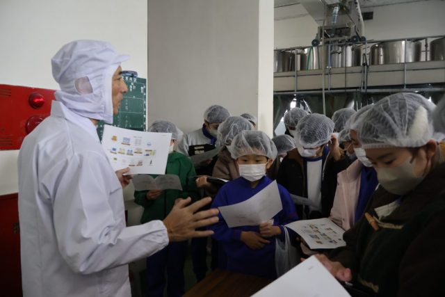 「今は7代目で、けっこう長く続いていることが分かります。来たときはどこからどこまでが君の井酒造の場所か分かりませんでした。(広すぎて)次にお酒ができるまでの過程を書いた紙をくばられました。中に入るとキャップをかぶるよう、言われました。次に手を洗うように言われました。私は、お酒がすごいせん細なものなんだろうなと思いました。広い間に入って、ゆげを出した機械がたくさんありました。次の所では、お話を聞きました。それに、酒粕や原酒を見せてもらい、香りを感じました。その後、本店へ行って、残していきたいか?と聞くと、もちろんと大きく頷いてくれました。」