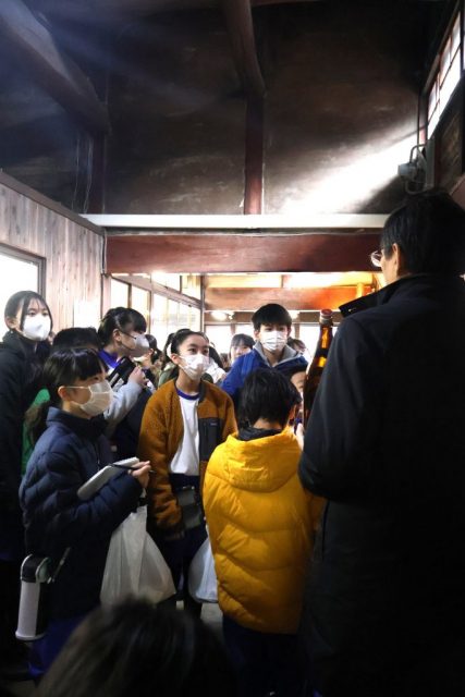その後、君の井酒造のお店にいきました。お店の前を通っている道路は昔江戸時代に参勤交代の列が通っていたことや、君の井という名前は明治天皇に献上したお酒という意味合いから「君の井」という名前がついたことを知り、歴史の深さを感じていました。