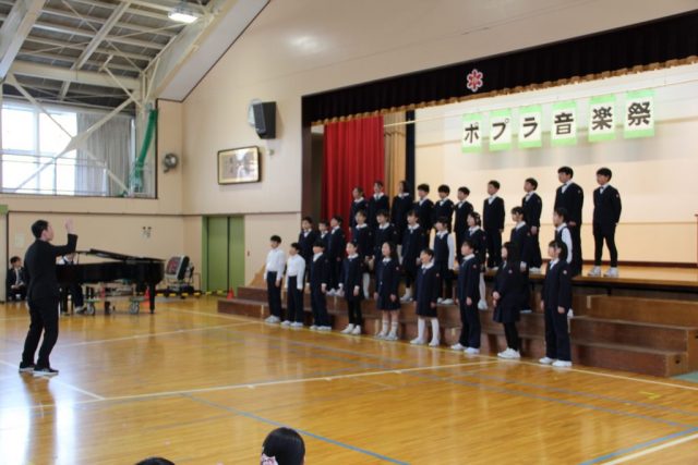 子どもは、仲間と共に、ポプラ音楽祭に臨みました。歌ったのは、「すてきな一歩」(5年1組)、「夢の世界を」(5年2組)、「地球星歌」(5年1・2組合同)です。子どもは、当日を迎えるまで、高音・低音のハーモニーが生まれるように歌い方を工夫したり、盛り上がりの部分で特に声と気持ちをこめたりするようにしながら、歌うことを重ねてきました。当日は、歌っているときに多くの方がうなずきながら聞いてくださったり、「心にのこるね~」「感動するね~」などの感想を口にしてくださったりしました。