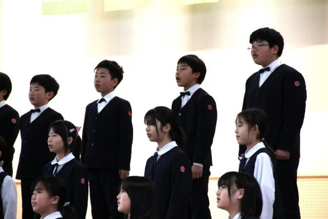 「ぼくは、曲を初めて歌った頃は、自分自身の歌声の理想とは何かとぎもんに思いました。特に、『地球星歌』では、高い声などを出すのは、苦手でした。だけど、『地球星歌』を歌っているうちに、自分自身の『理想の声』が分かるようになってきて、この曲の『そう だれにでも~』のあたりが自分自身の『理想だ!』と思いました。ぼくは、発表前に『ついに自分たちの番が来てしまった』と思いました。だけど、いざ歌ってみると、気楽になった感覚で、ひと風ふいたように気持ちよくなりました。ポプラ音楽祭は、ぼくたちにとって、もう6年生の残り1回だけど、楽しみたいです」
