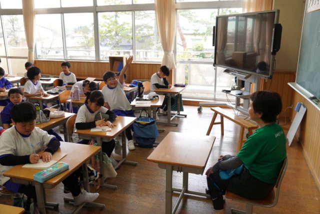 子どもは、「大会に出て入賞したことはありますか?」「どうやったらそんなに長く走ることができるのですか?」「速く走ることとゆっくり長く走るのは、どちらが好きですか」「いつから走ることを始めたのですか?」など、質問しました。